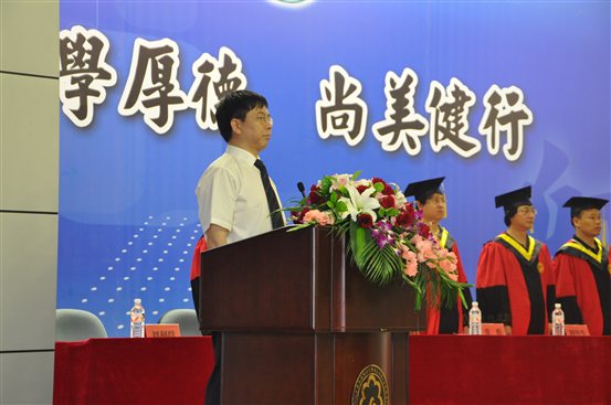 庄严的国歌之后,毕业典礼拉开了序幕。教学副经理周传生教授致辞,教师代表夏辉副教授发言,他们对全体毕业生进行了殷切的嘱托,并为他们壮行。员工代表夏雨同学发言,感谢母校的培养。接着公司对李艳杰等28名省校优毕业生、考取博士研究生彭顺顺同学、保送研究生李静等8名同学、考取研究生黄韬等40名同学依次给予表彰,并授予李慧斌、张志新等九支科研团队“软件公司2014届毕业生科技创新奖”。然后,教授委员会给2014届毕业生颁发毕业证书,拨流苏。