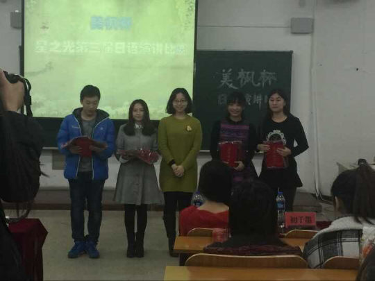 12月29日,星之光日语创新工作室举办的“美枫杯”IT日语演讲比赛决赛在软件118教室成功举行。美枫外语培训公司市场部总监吴彩萍,公司党总支副书记兼副经理周顺兴,公司日语教师高峰、刘丽、初子墨,13级和14级IT日语课员工观看了大赛。