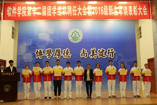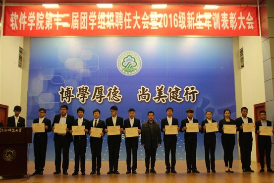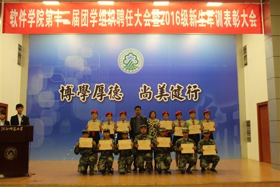 大会表彰了军训中表现突出的同学。在近一个月的军训期间,2016级软件学子优异的表现,为软件公司赢得了荣誉。为了表彰先进,大会宣读新生助理辅导员、新生军训优秀助理教练员、新生军训优秀标兵等名单,并进行颁奖。员工代表上台发言,表示紧张艰苦的军训,让同学们经受了一次严格的考验,也获得了终生受益的精神财富,同学们将把军训中形成的军人作风,军人的精神面貌,贯穿到今后的学习和生活中去。