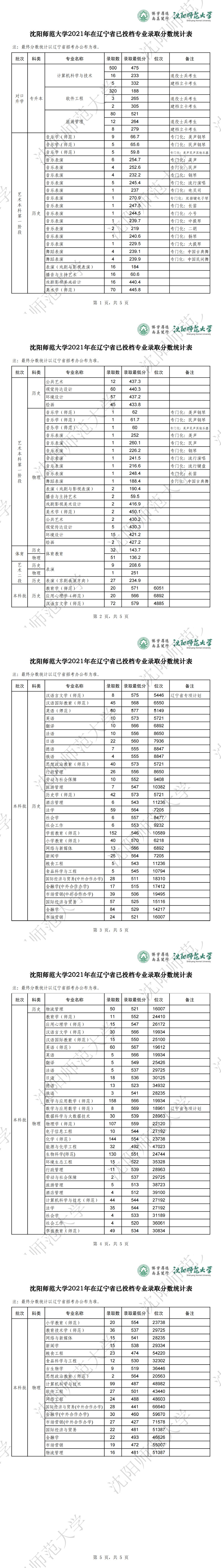 2021年各专业在辽宁省录取分数统计表