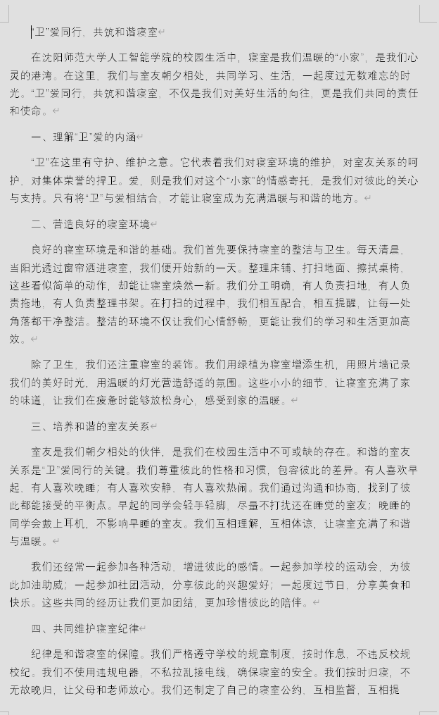 “卫”爱同行,共筑和谐寝室”征文活动